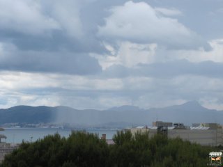 Glücklicherweise konnten wir ein Hotelzimmer bis zum Abend nutzen. Vom Balkon ließen sich die enormen Regengüsse, die von Palma zur Playa zogen, beobachten.