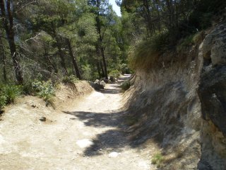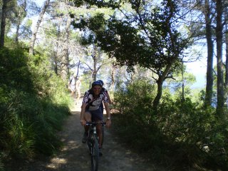 Wir starteten zusammen mit unserem Wolfi in Esporles und es ging schnurstracks in das Tramuntana-Gebirge. Das Wetter war, wie es sich für Malle gehört sonnig und fast schon zu heiß für eine Fahrradtour. So gestaltete sich der Aufstieg mit dem Bike auf einer schmalen Trampelpfadstrecke doch als äußerst pulstreibend. Der Berg wurde aber bezwungen und fortan ging es mal hoch mal runter durch unterschiedliches Gelände und auf unterschiedlichem Geläuf. Leider mussten wir auf der Strecke doch einige Male anhalten, um nicht ganz so auseinandergerissen zu werden. Die Anstrengungen des Vortages machten sich doch bei einigen bemerkbar und deshalb gab es zwangsweise Stops.