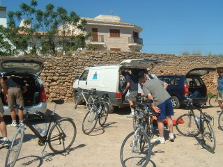 Wir starteten, nachdem sich die meisten von uns diesmal zurückhaltend vorbereiteten, am frühen morgen auf unsere berüchtigte Mittwochstour mit unserem weniger berüchtigten, aber immer lustigen und erfahrenen Guide Wolfi auf eine für uns spannende und keineswegs leichte Tour. Treffpunkt mit Wolfi war die Stadtmauer von Alcudia, wo wir die Trekking-Räder in Empfang nahmen und sogleich in die Geheimnisse der Fahrradmontage eingeweiht wurden. Von Alcudia aus ging es per Drahtesel in die Pampa. Die Strecke war nicht lang, aber einigen verlangte sie doch eine Menge ab. Der ständige Wechsel von Berg und Tal und ein etwas längerer Anstieg trieben doch so einige Schweißperlen auf Dieters Stirn. Aber auch die anderen kamen nicht ungeschoren davon und die T-Shirt waren nach Beendigung der Fahrradetappe durchweicht.